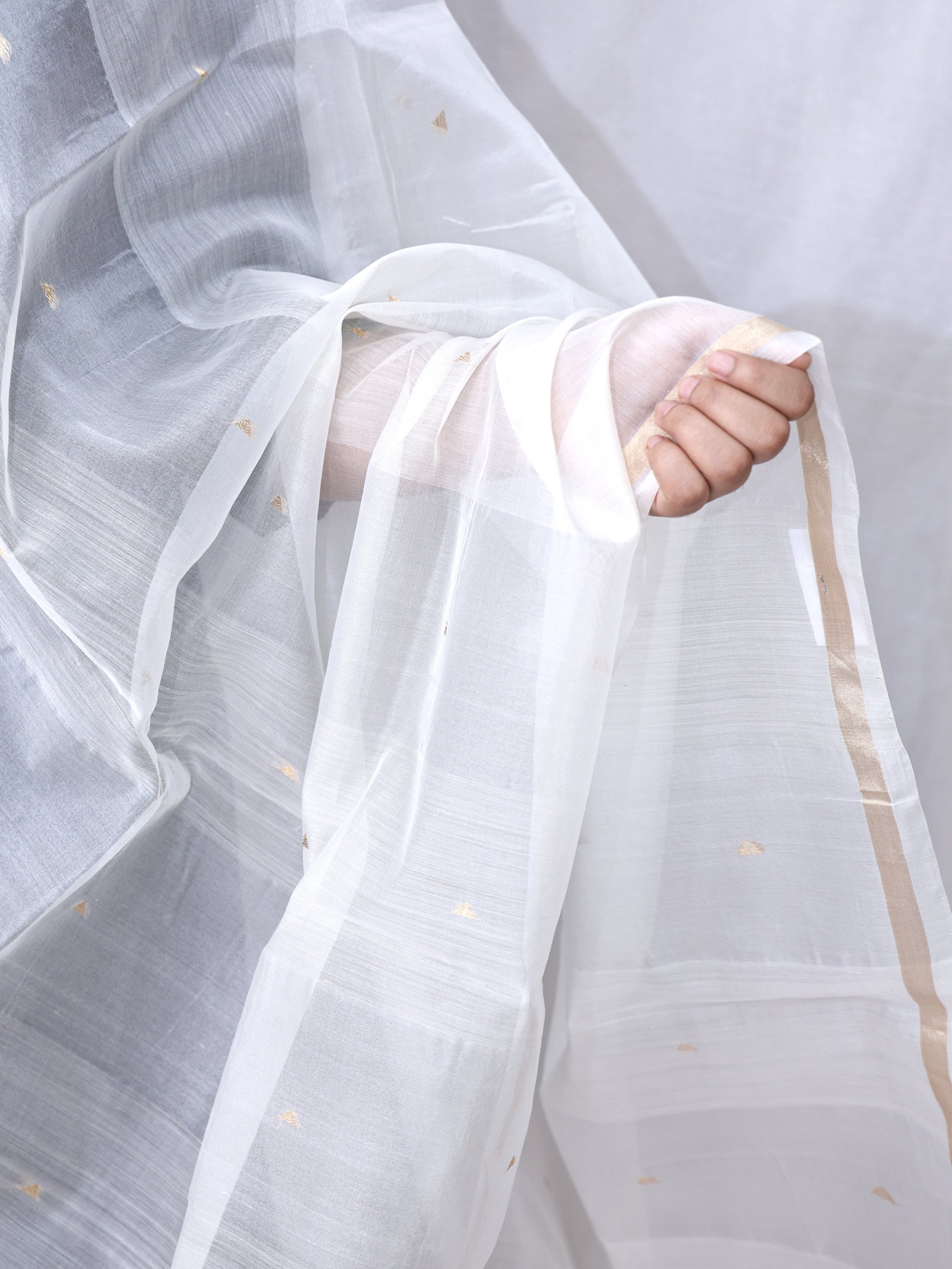 Off White Cottan Organza Patta Tissue Pallu banarasi dupatta